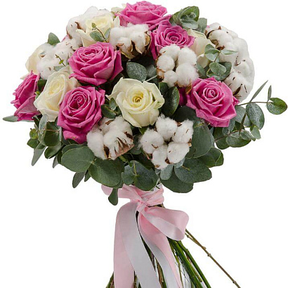 розы - 17 шт хлопок - 11 шт эвкалипт - 3 шт (Уточняйте наличие перед совершением заказа.)